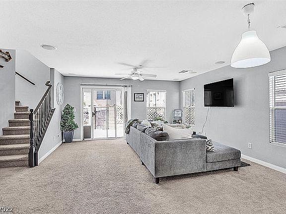 This is a great 2-story home in a gated community! The downstairs features an open floor plan, tile flooring and breakfast bar in the kitchen, and carpet in the family room and bedrooms. Easily maintained desert landscaping with a patio in the back. The master bedroom has a private balcony. Community features include 2 pools/spa, park, walking trails, and more!
