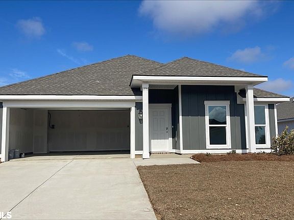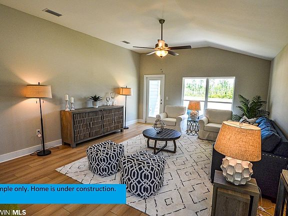 This sale was part of a bulk transaction and is not to be considered as a comp for a single sale. The Denali Floor Plan is one of the most popular plans in the Rosewood Subdivision. With 10 foot ceilings in the main living areas, you will proudly invite friends to this new 3 bedroom, 2 bath, Denali Floor Plan (Lot #53) by highly reputable and desirable local builder, Truland Homes! Just minutes away from the beautiful white sand beaches of Gulf Shores and Orange Beach. With Grizzle Grey (color) board and batten exterior siding, this home is light and airy and gives you a feel of a beach cottage. This open floor plan with large windows which allow for natural light is great for gatherings. The kitchen is the perfect place for entertaining and has painted white cabinets, stainless steel Samsung appliances, tiled backsplash, brushed nickel finishes, granite countertops, and stainless steel sink. Truland Homes is known for building homes focusing on Height, Light, and Detail. Situated on a 60' x130' lot in the back of the subdivision makes it a great location. Primary bath boasts spacious shower and undermount ceramic sinks with dual granite vanities & plenty of elbow room. Brio (Highlight Oak color) EVP flooring throughout for durability and easy clean up. Great community pool with 6” Baja tanning shelf. Low HOA fees. Gold Fortified certification can lower insurance rates. This connected home comes complete with a Ring Doorbell, a smart things hub, a smart thermostat compatible with Alexa, landscaping package and more! Hurricane fabric storm protection system. Complete with PWSC 10 year warranty. One-year renewable repair and retreatment termite bond with Formosan coverage. HOA transfer fees are the buyer's responsibility. All final offers to be placed on the Truland Homes contract. Home under construction. Estimated Completion date of early 2023.