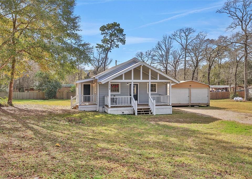 NO RESTRICTIONS! Peaceful country living at its finest, when you step inside your welcomed to an OPEN CONCEPT LAYOUT, LUXURY LAMINATE FLOORING, QUARTZ COUNTERTOPS, STAINLESS STEEL APPLIANCES and BLUE SHAKER STYLE CABINETS! You will love the BARN STYLE DOORS and dedicated laundry room with WASHER & DRYER INCLUDED! This gem comes with COVERED FRONT PORCH, METAL & COMPOSITION ROOF, 20 X 20 METAL BUILDING w/two roll up doors- ideal for a WORKSHOP, DOUBLE GARAGE or EXTRA STORAGE! The spacious yard is your personal canvas, offering plenty of room to bring your outdoor ideas to life. This property is a perfect blend of modern style, functionality, and the freedom of unrestricted living. Love outdoor recreation? Your new home is located by Lake Livingston which offers FISHING, SWIMMING, BOATING, HIKING, CAMPING and more! Just minutes from downtown Coldspring you can explore restaurants, shopping and historic sites in the most charming river town in Texas! WELCOME HOME!
