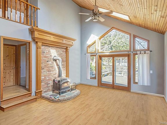 Orient - Hillcrest Estates - Overlooking 16 acres of picturesque vineyard, this contemporary home offers a rare blend of natural beauty and modern potential. Surrounded by lush, mature landscaping, the property features an in-ground pool with vineyard views stretching to the east—an idyllic setting for relaxation and entertaining. Step inside to a dramatic Great Room with soaring ceilings, setting the stage for a bright and airy living space. The flowing layout includes an eat-in kitchen, a formal dining room, guest bedroom or office, laundry room and endless opportunities for personalization to make it your own. Upstairs, the second level features two inviting guest bedrooms with a shared full bath, while the spacious primary suite boasts vaulted ceilings, elevated vineyard views, and a generous en-suite bath. Beyond the home, experience the best of North Fork living with exclusive access to Truman Beach, charming local farms, world-class fishing, and renowned farm-to-table dining. Don’t miss this incredible chance to create your dream retreat in the heart of wine country!