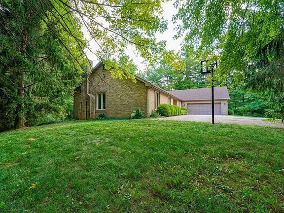 Hard to find hillside all brick ranch with full finished walkout lower level on 1-acre wooded lot. Huge vaulted screen porch, geothermal heating and cooling, newer windows, vaulted great room with built-ins, 2-brick wood burning fireplaces, lots of fresh paint and carpet, and an awesome multi-purpose lower level with 3rd full bath framed, dry walled, and roughed in. Private mature setting.