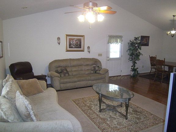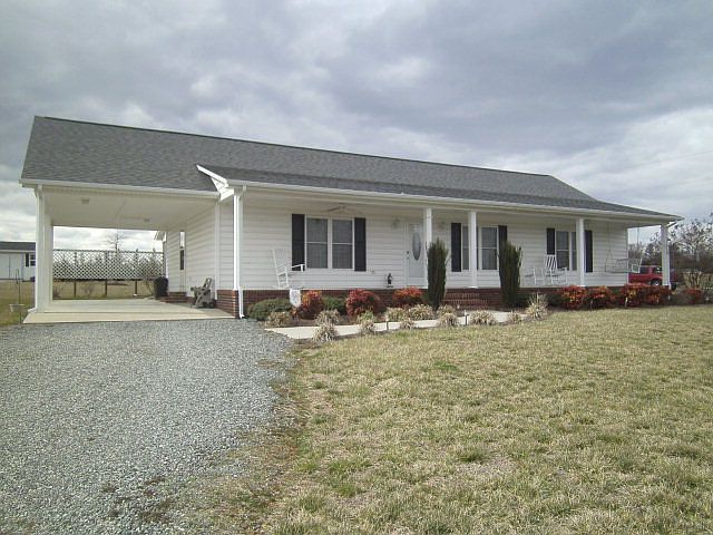 Open floor plan with great rm, dining room and kitchen area. Country setting just a few miles from town. Carport and covered front porch. Kitchen is bright and cheery with the skylight, solid oak cabinets, solid surface counters. All appliances including washer and dryer. Exterior ramps that could be easily removed if not needed make it wheel chair accessible. Several walk-in closets. Storage building.