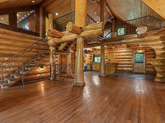 Duck pondMain-level masterMassive timbersWood finishesOpen living spacesHand-painted muralsRustic sinks