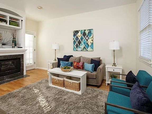 This two story Virginia-Highland townhome has a patio balcony, one-car garage, plenty of built-in shelving, lots of sunlight, a gas fireplace and a washer/dryer.