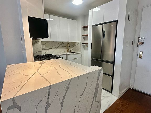 Welcome to this spacious studio unit in Midwood! Beautiful wooden floors, upgraded kitchen with quartz countertops, stainless steel appliances and new kitchen cabinets with great storage. The unit has a wonderful floorplan and you can build the privacy of your own bedroom without paying the one bedroom prices. Bathtub in bathroom and lots of natural lighting. If you want to live nice and on a budget this unit includes all utilities (except wi-fi) , heated pool for summer, storage room/bike room, 24 hour doorman, backyard bbq area, in- building laundry room, & elevator. On street parking is readily accessible. Very convenient shopping and transportation. This one is yours