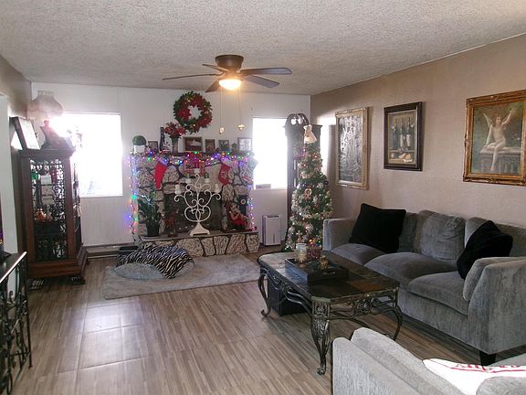 Location, Location... 3 bed two bathroom home, walking distance to schools and shopping. Beautifully landscaped yards with rear yard completely fenced. Enclosed front patio to relax and enjoy, and a covered rear patio. Fireplace in the living room with hearth, laundry closet with plenty of shelving for pantry. Bath with tub shower combination and the on suite bathroom is shower only. Bay window in main bedroom with window seat viewing the back yard. Solid home with wood T111 siding, city services. Large double car garage with opener, work bench and extra area for hobbies. 8 x 16 wooden storage shed in rear/side yard.