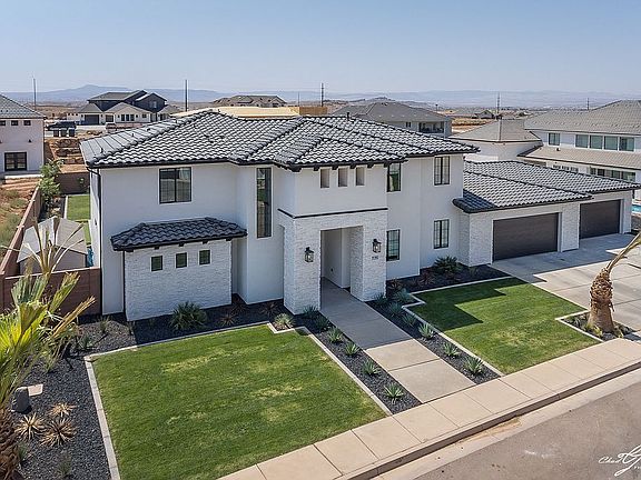 Luxury modern Mediterranean home located on the bench overlooking Washington Fields just minutes away from elementary, intermediate, middle, and high schools. This home is over 4,600 square feet (3,600 first level 1,000 second level) with seven bedrooms and five and half bathrooms. Finishes throughout the interior include: - 8” plank white oak hardwood flooring - 10’ ceilings on first floor - custom cabinets - high-end stainless-steel appliances including two dishwashers - custom range hood - large 15’ island with seating for six - walk in pantry with butler’s counter - tiered theater room - family room off kitchen - two large 12’ bifold doors that open the dining and great room to the covered lanai - large dual head master shower - two second floor bedrooms with ensuite bathrooms This house sits on a large .39-acre lot with outstanding outdoor amenities including: - four car garage with extended work area - full outdoor BBQ area including stainless-steel griddle, grill, cooktop, fridge, and sink - linear fireplace - outdoor TV - built-in high-pressure misting system - half court basketball/pickleball court - large sandbox and bark play area - putting green - large grass area - fully fence back yard - low maintenance desert plants Furniture and other furnishings can be included in price for additional cost if desired. Call or Text with any questions or to schedule a viewing: 435-491-0475