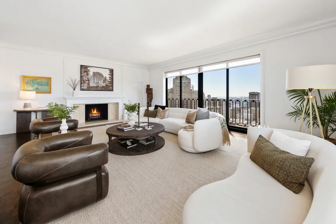 Wood-burning fireplaceEn-suite bathPanoramic western viewsPrivate elevator landingMarble-clad bathDressing areaCedar-lined closet