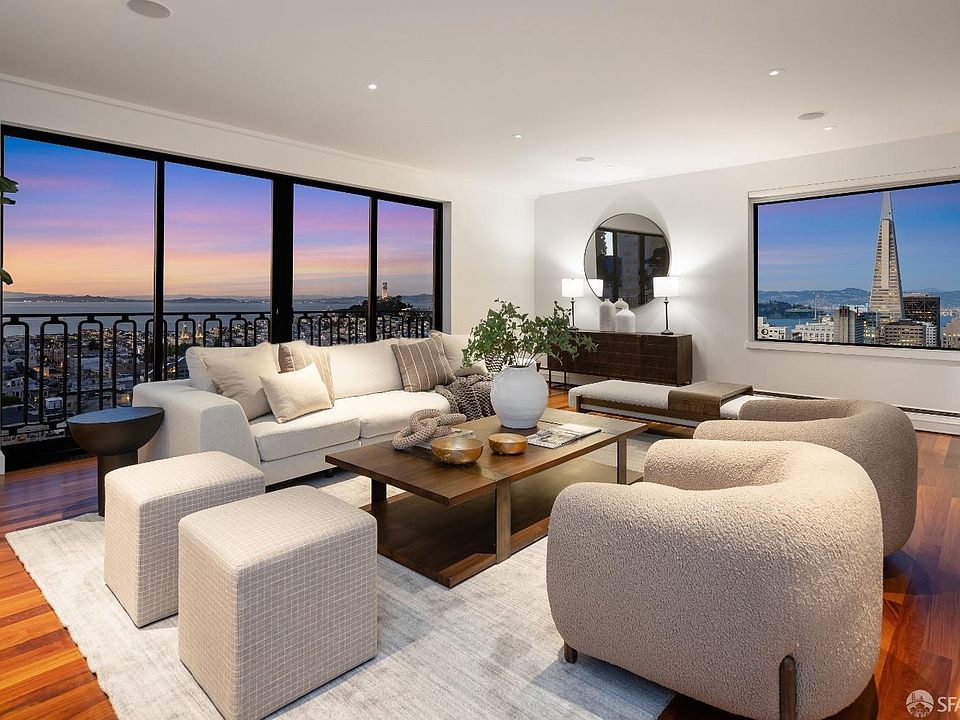 Commandingly sited on the northeast corner on the 5th floor of 1170 Sacramento, this spectacular 2,780sqft residence delivers sweeping views of famous San Francisco icons spanning the serene North Bay to the dynamic Downtown skyline. This rare apartment serves as a comfortable home with modern amenities that scales to ignite generous entertaining. A private elevator landing, gourmet view kitchen, sophisticated whole-house infrastructure, Formal living room with balcony & fireplace. Spacious primary suite with large walk-in closet off the family room or office. Second bedroom is en-suite. and garage parking for two cars combine to create the ideal city residence. 1170 Sacramento overlooks the beautiful Huntington Park on San Francisco's Nob Hill amidst the famous Fairmont, Huntington & Mark Hopkins Hotels, the majestic Grace Cathedral and the stately Pacific Union Club. 24 hour doormen and 2 car parking provide the home owner with a unparalleled lifestyle in a world class location.