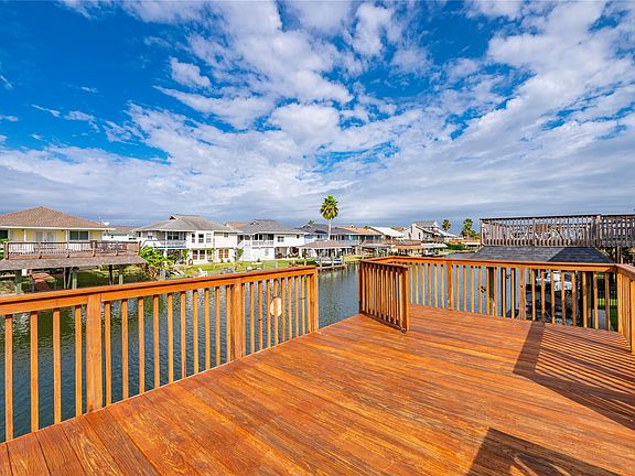 Wonderfully maintained waterfront home with great location on the canal. A boathouse, catwalk and large covered deck adds to the outdoor living space. Freshly painted interior and ready for move-in! Big living room with lots of windows across the front letting in natural light. Beautiful flooring through out living areas and bedrooms, tile in the bathroom. Good sized bedrooms with double closets in each, one has a walk-in closet offering lots of storage. Downstairs is an extra room with "tiki bar", utility room with washer and dryer conveying with the property as well as the refrigerator and window unit A/C. Fisherman's half bath, workshop area, garage, covered parking under house as well as carport street side. New roof in 2023. Call today!