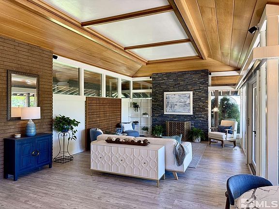 Nestled on a ravine in desirable southwest Reno, this stunning distinctive custom-built single-level home offers the perfect blend of elegance, comfort, and magnificent views. Situated on a quiet cul-de-sac, its exceptional curb appeal is enhanced by vibrant landscaping designed for privacy, serenity and easy maintenance, the park-like backyard is fully fenced with decorative wrought iron. Floor to ceiling windows flood the home with natural light while showcasing the sweeping panoramic vistas., Available for the first time in over 25 years, this home is move-in ready. With Eichler-inspired clean lines, large inviting rooms and gorgeous wooden ceilings, this home is truly unique. The features are too numerous to list here, but the greenhouse which could be converted into a casita and the chef’s kitchen with new granite and quartz counters, new induction cooktop and down-draft are a few highlights. Be sure to reference the features for full details of this once in a lifetime home.