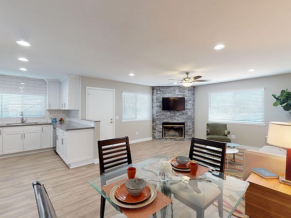 Home features: - Samsung black stainless steel appliances, including dishwasher and microwave - Quartz countertops - Custom cabinets with soft-close drawers - Oversized kitchen sink - Custom paint - Wood-style flooring - In-unit washer dryer - Central AC - Ceiling fans - Gas fireplace - Off-street parking - Private yard or patio (type and size vary by home)