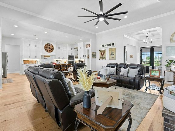 Your private haven awaits—where elegance, space, and self-sufficiency meet. Welcome to a rare opportunity to own a custom 4-bedroom, 3-bath estate on 2.184 acres of beautifully maintained land. This 3,743-square-foot property offers the perfect balance of modern luxury, functional living, and peaceful country charm—all just under an hour from Austin, close to the airport and Tesla. From the moment you arrive, the privacy and serenity of this home are undeniable. Inside, generous open-concept living spaces are filled with natural light, highlighted by soaring ceilings, a warm color palette, and a classic brick fireplace that anchors the spacious living room. The gourmet kitchen is a true chef’s delight, featuring quartz countertops, a wine bar, a large walk-in pantry, and custom cabinetry—designed to handle everything from casual breakfasts to elegant entertaining. Retreat to the oversized primary suite, a true sanctuary with, recessed lighting, and a ceiling fan for year-round comfort. The spa-inspired en-suite bath offers dual vanities, quartz counters, and walls and floors clad in luxurious quartz tile. Enjoy a relaxing soak in the freestanding tub or refresh in the walk-in shower. Two expansive walk-in closets complete this exquisite space. Three additional bedrooms, two full baths and a game room for family, guests, or a home office setup. Step outside to experience —a covered patio with a full outdoor kitchen, perfect for unforgettable Texas evenings. The workshop and greenhouse provide flexible space for creativity, gardening, or even a home-based business. Whether you’re cultivating a homestead, hosting weekend BBQs, or simply unwinding under the wide-open Texas sky, this home is designed to support the lifestyle you’ve always dreamed of. Luxury meets functionality. Privacy meets potential. This is more than a home—it’s a way of life. Schedule your private showing today and experience the magic of this Texas retreat before it’s gone.