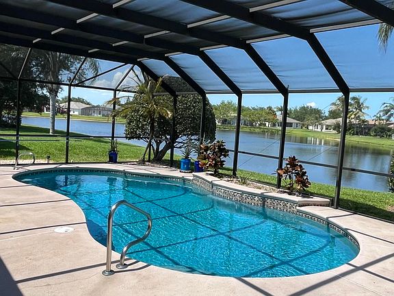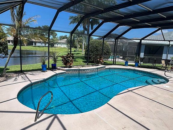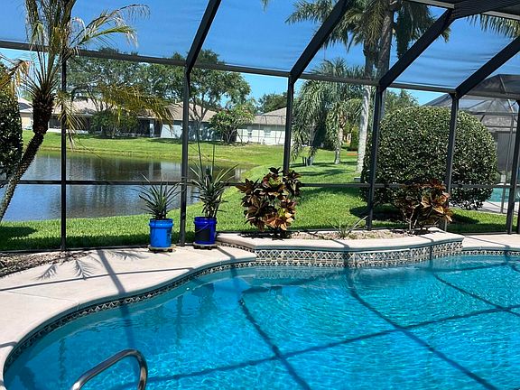Rockledge beauty in highly desirable Auburn Lakes community. Spacious 4/2 split plan w/ a stunning pool area overlooking neighborhood lake.Pool has solar heat panels. Well maintained block home w/ an open floor plan design & vaulted ceilings. Master bath w/ soaking tub & its own sliding doors to the pool deck. Roof 2019, hall bath remodeled 2022, water heater 2023, vari-speed pool pump 2022, A/C 2012, newer Pella windows & sliding doors w/ accordion hurricane shutters. Inside laundry room. One of the largest lots in the neighborhood. Lush landscaping. Great schools. Neighborhood offers Viera nature trails & a wooded wild life preserve great for biking & walking. Conveniently located 5-10 minutes to the avenues for shopping, dining & golf.