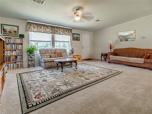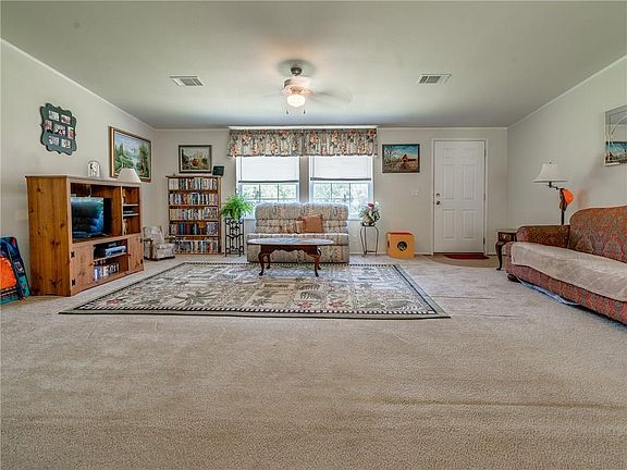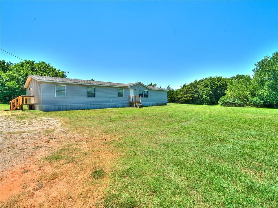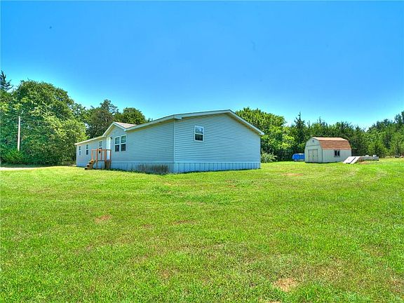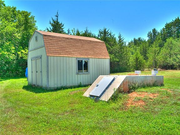Experience the good life just 15 minutes from the heart of Noble or Lake Thunderbird. Nestled at the end of Corlett Ct the gravel drive bends around a grove of trees offering peaceful seclusion as you gaze across your 2.86 acres MOL surrounded by a lovely wooded atmosphere of beautiful greenery. Front entry opens to huge living offering plush carpeting & warm neutral palette set off by white trim. Large windows bring in natural light & amazing view. Decor flows beautifully into large dining alcove. Kitchen features stone tile accents, island, 3-cabinet pantry & built in work/desk space. Kitchen overlooks 2nd living with stone fireplace. As with most country homes, the true entry is the mud room - spacious enough for bench, shelving, freezer & washer/dryer. Split bedroom floor plan with master boasting attached sitting room or private office. Master bath offers double vanity, soaker tub, separate shower & large walk in closet. Plus storage shed, 8-10 person storm shelter & new A/C unit.