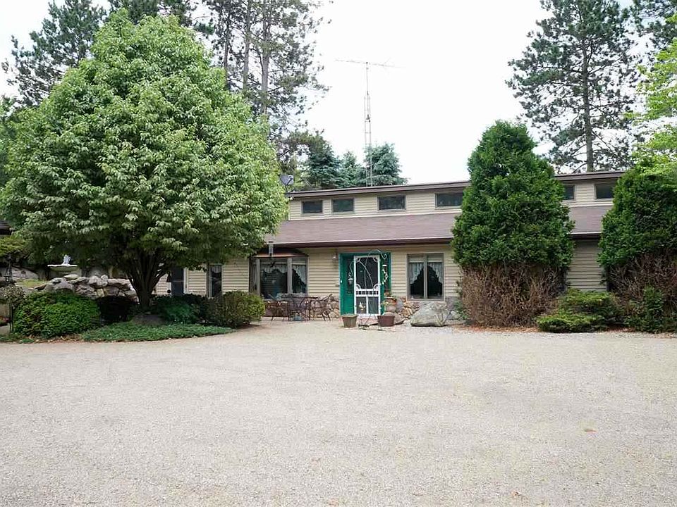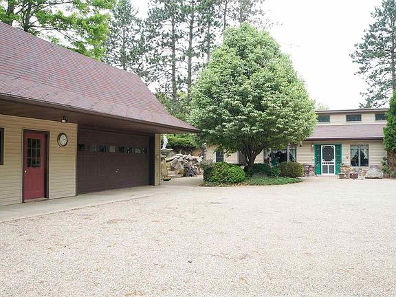 WOODS GALORE w/trails meandering through this gorgeous setting! The drive winds past beautiful landscaping leading to quiet country setting for this unique ranch-style home nestled into the hills on 18 acres. Enjoy this peaceful setting, wildlife galore and the home features a great open floor plan with cathedral ceilings and clerestory windows that lighten every room. Roomy eat-in kitchen with breakfast bar is great for entertaining and family gatherings. Spacious living room with spiral staircase to loft. First floor master with attached bath, large foyer and laundry. Sportsman and hobbyist dream - spacious garage has upstairs work / hobby area and storage with ground level access for ease of use. Pole barn provides added storage plus large workshop. Super energy efficient design - heat pump on furnace for added efficiency. Cleared land for your dream garden too. Pole barn size, 30x50. Garage size, 28x52. Ten additional acres available ref MLS #20027769.