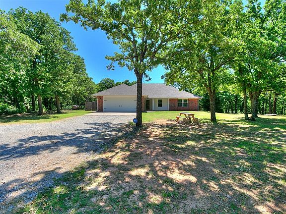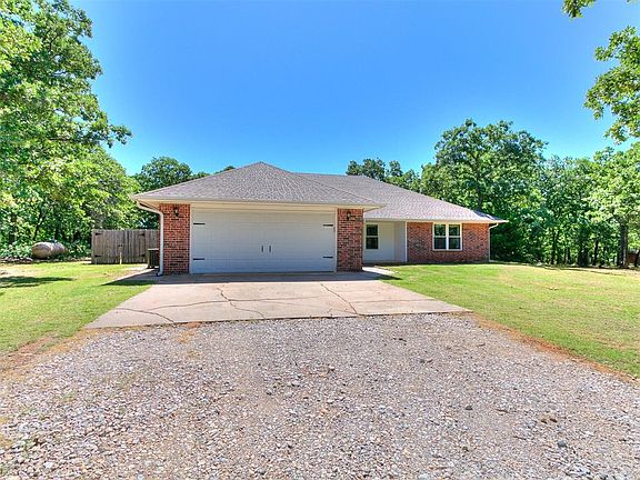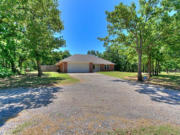 Looking to escape the hustle and bustle and enjoy country living at it’s finest? Welcome to 11700 S Harrah Rd, Newalla, Oklahoma. This charming 3 bed, 2 bath home sits on approximately 5 acres with mature trees, fruit trees, and wild blackberries. Wildlife enthusiasts will enjoy regular visits from deer and the quaint pond. The property features a partially fenced area ideal for pets or play. Inside, a modern, neutral color palette complements the fully remodeled kitchen with quartz countertops. The kitchen flows into the sunny dining area and cozy living room with a wood-burning fireplace - making it the perfect hub to gather with loved ones. Past the main living area, you’ll find three generously sized bedrooms and a recently updated hall bathroom. The spacious master suite includes a private ensuite bathroom with double walk-in closets and double vanity sinks. Additional amenities include a storm shelter for peace of mind during Oklahoma's storm season, a backyard shed for extra storage, and a 2-car garage ready for a generator hookup with a 6-circuit manual transfer switch, additional covered parking perfect for an RV is also available. Recent updates include a fresh gravel drive (2025), a clear termite inspection (2025), a newer water heater (2023), and professionally steamed carpets (May 2025). The entire acreage is fenced with remote gate access, ensuring privacy and security.