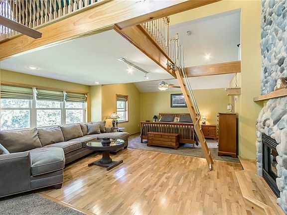 Live the lake life! Beautiful 4 bedroom, 2 bath lake home has so much to offer! The property features a 2480 square foot home, a 3 car garage with a heated workshop above it with an office and a storage shed on almost half an acre. There are water views throughout the property and a second story loft with wall to wall windows. Walk down to your boat with your deeded access and dock. The entire second floor of this one-of-a-kind home is a bedroom suite with a walk in closet, bathroom, loft and access to its own private balcony. Enjoy the views of the water in the sunroom off of the kitchen. There are skylights throughout. Come see your home!Open house November1st, from 11:00 am to 1:00 pm. Refreshments provided!