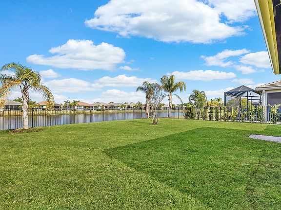Lovely 3-BR, 2.5-BA Atlantica model in Valencia Cay at Riverland, Tradition. Built in 2020, situated on an oversized lakefront lot with room for a pool, this home offers modern upgrades throughout - porcelain plank flooring (no carpet), impact glass windows, with tranquil lake & garden views from the great room, primary suite, & covered patio with gas hookup for grilling.Gourmet kitchen features quartz countertops, glass tile backsplash, high-gloss acrylic cabinetry, expanded pantry space, large center island for entertaining, & upgraded GE Profile stainless appliances with a vented range hood. 3rd BR is used as a den/office, providing flexible living options. Spacious laundry room with upper cabinets, laundry sink, upgraded washer & dryer, large storage pantry/closet. Epoxied garage. Located in the heart of Tradition, Valencia Cay residents enjoy access to Riverland's resort-level amenities: a 34,000 sq. ft. clubhouse with resort-style pool, hot tub, card rooms, billiards, & a grand ballroom; a 5-acre Arts & Culture Center; and a 51,000 sq. ft. Wellness & Fitness Center with indoor/outdoor pools, indoor sports courts, pickleball, tennis, bocce, and walking trails along the Paseo Greenway. Located near Tradition Square, shopping, dining, Cleveland Clinic Tradition Hospital, and easy access to I-95. Perfect for buyers seeking luxury, lifestyle, and convenience in Port St. Lucie. Call Today for Your Private Showing!