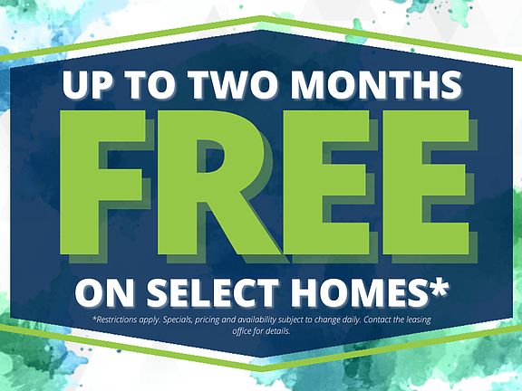 - Special offer! Up to Two Months Free on select home! *Restrictions apply. Specials, pricing and availability subject to change daily. Contact the leasing office for details.