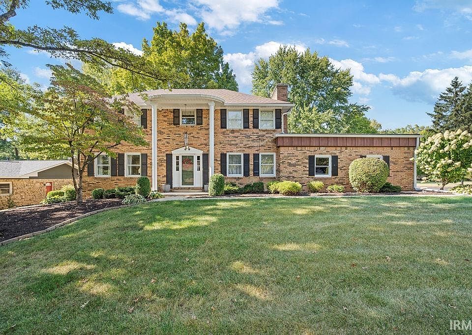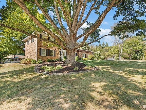 Located in the desirable golf community of Green Acres, this charming brick home offers nearly 2,200 square feet of living space plus a finished basement. The main floor features a welcoming layout with a cozy family room highlighted by a stone fireplace and built-in bookshelves, a formal dining room, and a versatile bonus room with a striking brick wall. The applianced kitchen has newer flooring and flows seamlessly into the living spaces, creating a warm and functional setting for everyday living. Upstairs, the spacious master suite includes its own fireplace, walk-in closet, and private bathroom. Three additional bedrooms and an updated full bath complete the second level. The finished basement adds even more living space with vinyl plank flooring, an open area for recreation or hobbies, and a separate storage room. Enjoy outdoor living on the screened-in porch overlooking the corner lot. Additional highlights include a two-car garage, HVAC system new in 2022, and gutters with guards installed in 2024. Don’t miss your chance to make this wonderful Green Acres home yours!