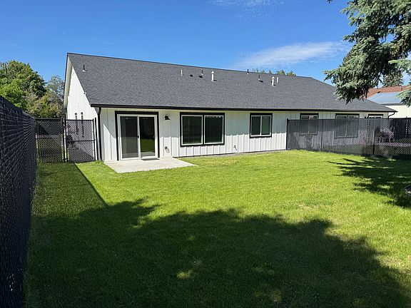 Spacious Newer duplex with huge fenced yard and large side yard. This open concept home has all the newest amenities like hard surface counters, stainless steel appliances, cathedral ceilings, insulated 2-car garage, modern cabinets/lighting/fixtures, incredible primary suite, and all on one level living. Comes with a washer and dryer. Close to shopping, schools, restaurants, and recreation. Owners are very hands on and easy to get ahold of. Owner is a Real Estate Agent and when using him you are allowed to break the lease and move into your new home. This georgous unit won't last long. Lease term is 12 months however if you want to buy a home and use the Landlord as your Real Estate Agent you can break the lease and move into a home you buy.