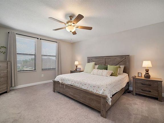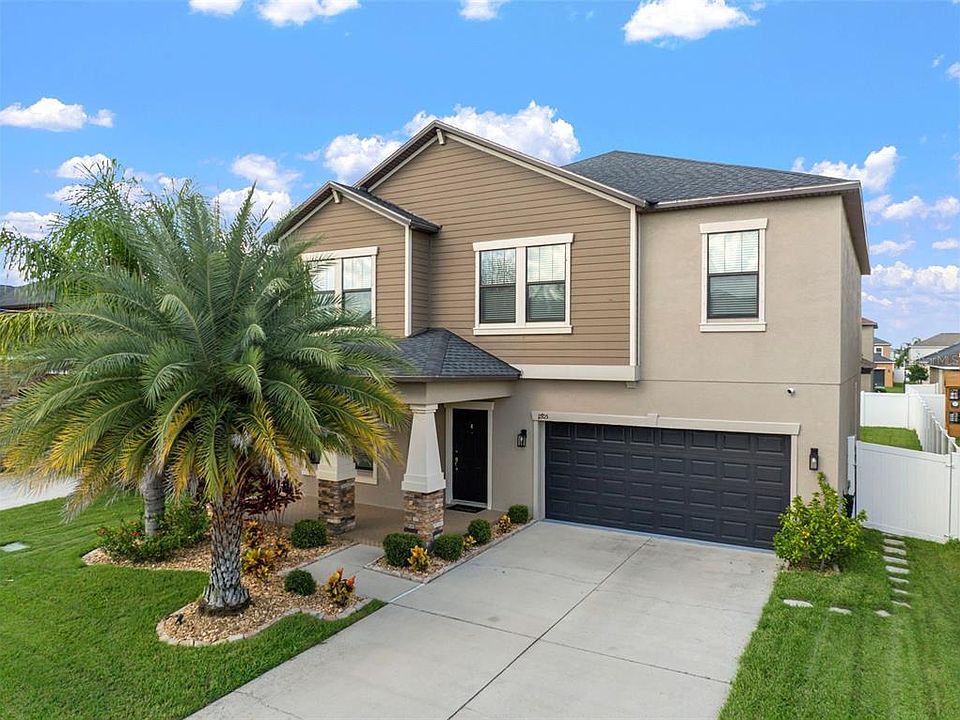 You are first welcomed by a grand, oversized front porch, finished in timeless brick and laid in an elegant, modern herringbone pattern, making for an inviting introduction to this thoughtfully designed home. Step inside, and you are immediately greeted by spacious, open-concept living with designer touches throughout. Large diagonal tile flooring, substantial baseboards, soft neutral tones, and chic modern fixtures create a sense of understated luxury. The gourmet kitchen is the heart of this home, boasting handsome oversized dark wood cabinetry, gleaming stainless steel appliances, and sleek quartz countertops. A charming butler’s pantry doubles as a coffee bar, while a built-in workstation provides the perfect spot for a home office, homework nook, or organized household hub without sacrificing counter space. Downstairs, a redesigned stylish half bath and direct access to the fully fenced backyard make entertaining a breeze. The home is equipped with impeccable dual A/C units, ensuring comfort year-round with a dedicated system for the second floor. Upstairs, all bedrooms are thoughtfully tucked away for privacy. The owner’s suite offers a spa-like five-piece bath complete with a private water closet, while the additional full bath features dual sinks separated from the shower and toilet for convenience—wait until you see the depth of the oversized walk-in closets. Beyond the home itself, Ballentrae community residents get access to a resort-style pool and playground. Conveniently situated near premier dining and shopping, with effortless access to US Highway 301 and Interstate 75, this location places you just minutes from MacDill Air Force Base, Tampa International Airport, downtown Tampa, Water Street, and some of America’s most celebrated Gulf Coast beaches. Do not miss the chance to experience the Florida lifestyle, call today to schedule your private showing!
