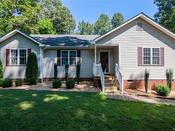 This well maintained three bedroom two bath ranch style home located in the Rivers Trace subdivision is ready for you to move in. It offers a large living room with vaulted ceilings, a gas fireplace, and newer flooring. The kitchen has been totally updated to include granite countertops, stainless steel appliances, tile backsplash. The floor plan offers the split bedrooms so the owners suite is on one side of the house and two bedrooms are on the other side. The home is privately sited on the lot. Located close to Lake Chesdin and Pocahantas state park.