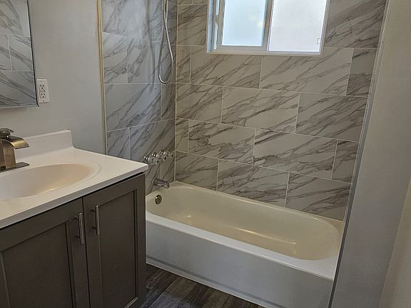 Downey, Large 1 Bedroom Downstairs Unit. Large Living Room Open to Dining Area. All New Interior Paint, New Wood Laminate Floors, New Tile Floor and Bathroom. All New Kitchen Cabinets and Countertops. The Kitchen Has Many Cabinets for Storage. The Bedroom is Large with a Wall to Wall Closet. Bathroom is also fully remodeled. One car assigned parking space with onsite community laundry room. Across the street from Warren High School.
