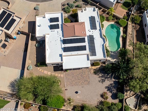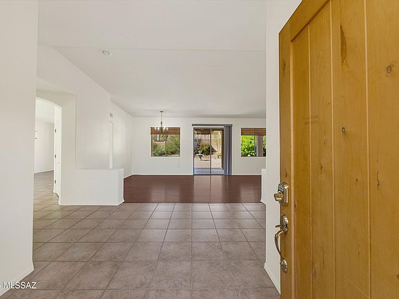 This freshly painted 4-bedroom + den home sits on a quiet cul-de-sac in the heart of Oro Valley, offering mountain and sunrise views plus a sparkling pool and a huge private backyard with room to play, garden, and entertain. Step inside to find inviting living and dining areas off the foyer, a flexible den/home office, and a bright family room that opens to the kitchen complete with a large island and breakfast bar, granite countertops, walk-in pantry, breakfast nook, and a skylight that fills the space with natural light. The split-bedroom layout provides a private retreat in the primary suite, featuring a garden tub framed by glass block windows, a walk-in shower, and a roomy walk-in closet. All bedrooms are getting new carpet, while the main living spaces offer wood laminate or neutral tile flooring. Step outside to your backyard paradise with a lengthy covered patio, mature shade and citrus trees, and plenty of plenty of space for relaxing or entertaining under the desert sky. Added perks include a gated side yard, water softener, wood slat blinds, and more thoughtful upgrades throughout.