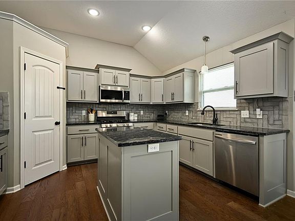 Welcome to this beautiful 4-bedroom, 3-bath split-entry home with a 3-car garage in the sought-after Liberty North School District. Only 5 years old, it feels like new with fresh interior paint, soaring vaulted ceilings, and a warm gas fireplace in the main living room. The kitchen is the heart of the home, offering granite countertops, a spacious island, a walk-in pantry, and abundant storage—perfect for everyday meals or entertaining. Enjoy two generous living spaces, including a finished lower level with a fourth bedroom and full bath, ideal for guests, in-laws, a home office, or a teen getaway. Main-level laundry adds convenience, while a covered deck overlooks the oversized, fully fenced backyard. With stylish finishes, thoughtful upgrades, and plenty of space inside and out, this home has it all!