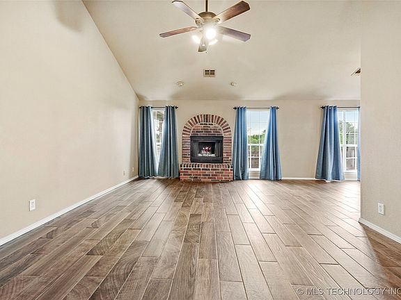 WELCOME HOME to this darling brick & stone cottage in beautiful Churchill Park community in Jenks. This home offers a fantastic floor plan, three bedrooms, 2 full bathrooms with large living room with wood burning fireplace. The kitchen offers new stainless appliances and an open pass-through to the sunny breakfast/dining area. Sellers enclosed part of the oversized garage into a great 8 x 10 flex/hobby room (not included in CH Sq Ft). The garage is still 2 car wide and deep and has storage and workbench. Concrete pad has been added to the side of the driveway as well as an added 25 ft by 20 ft patio. Convenient double drive thru gate to RV parking ready to go with 30 AMP service. HVAC replaced in 2019+/- Priced to sell AS IS and ready for quick closing!