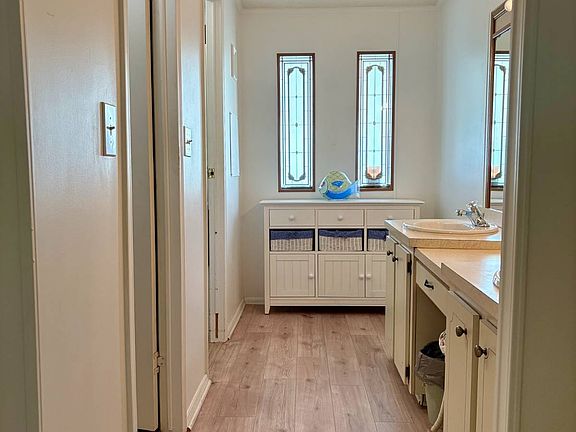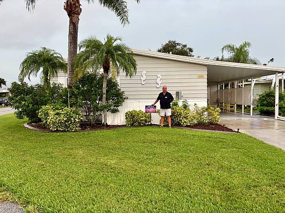 Welcome to one of the most spectacular and impeccably maintained homes in the rear of Bay Indies-a true standout on a lush, manicured corner lot nestled in a peaceful cul-de-sac. This 1988 Palm Harbor home offers 2 ensuite bedrooms, a den, a living and dining area, and an updated kitchen, all under soaring vaulted ceilings and ceiling fans that enhance the spacious feel throughout. The exterior highlights are having gorgeous landscaping on all sides with a majestic oak tree anchoring the backyard. A private shaded carport with attached shed featuring shelving, washer/dryer, and a convenient walkway. Just a short stroll to one of Bay Indies' clubhouses and one of three heated pools with a spa, and sits on a quiet cul-de-sac with generous green space. Interior features are a side entrance that opens to a desk area with utility closet and private access to the guest ensuite. The open kitchen has a wet bar, wood-stained cabinetry, black appliances, wall oven, island with cooktop and seating, plus pantry, flowing into den/TV room with built-in cabinetry, sofa, chairs, and entertainment setup. The home has a combination of laminate and carpet flooring throughout. The guest bedroom with queen bed, double closet, built in dresser/desk and ensuite bath having a walk in shower, vanity along with a hallway access. The expansive master suite is complete with another queen bed, double closet, bay windows (double-pane, tilt sash), and ensuite bath featuring a walk-in closet, double vanity with makeup station in between and a private shower room. The living and dining areas both have built-in cabinetry, and a dining table with leaf. The spacious living room has multiple seating options with love seat, sofa and occasional chairs, plus large windows framing the oak tree and backyard views. The enclosed Florida room has overstuffed chairs, TV, windows, screens, shades and yard access - perfect for year-round relaxation with an addition of a portable A/C. The perks are endless with this home as the roof was replaced in 2020, fully furnished and move-in ready, AND...Priced to sell-this is the deal of the day! Bay Indies has a full time Activities Director as there are so many functions. There are numerous outdoor activities to participate in and keep you active with tennis, pickleball, bocce, shuffleboard, corn hole, a kayak launch and storage and a 3 mile walking/biking path surrounding the park. There are three pools, 2 clubhouses with a 3rd state of art club house being built, gym, crafts, and unlimited card games, trivia night, dinners, concerts and so much more. We are located within close proximity to 3 airports and Venice offers restaurants, shopping, fishing, golf, boating and award winning beaches. A casino in Tampa and the Tiger Woods Pop Stroke 2 course putting greens in Sarasota are a must. Home must be maintained to the Community Prospectus. The lot rent is determined by the Community office and covers all amenities offered including property taxes and lawn maintenance.