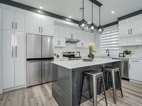 Centrally located just steps away from the Village Shopping, 10 minutes from Sidney by the Sea and 20 minutes from Downtown Victoria. B6 is a Boutique collection of 6 Townhouses, all are 3 Bed / 3 Bath with LCP Yards, Private Patios, Full Heat Pumps / Air-Conditioning, Single Car Garages, two storeys with main level living, big kitchens, high ceiling and efficient designs. These Brand-New Homes have all received occupancy with 2 left to choose from. TH5 is a Traditional Plan with main floor living and 3 spacious bedrooms up, all homes include large LCP Yards that are ideal for children and pets. TH5 HAS A 953 SQ FT FRONT YARD + SIDE YARD FOR THE BBQ.