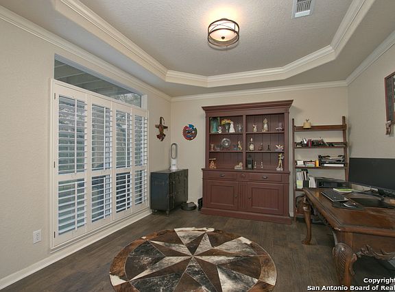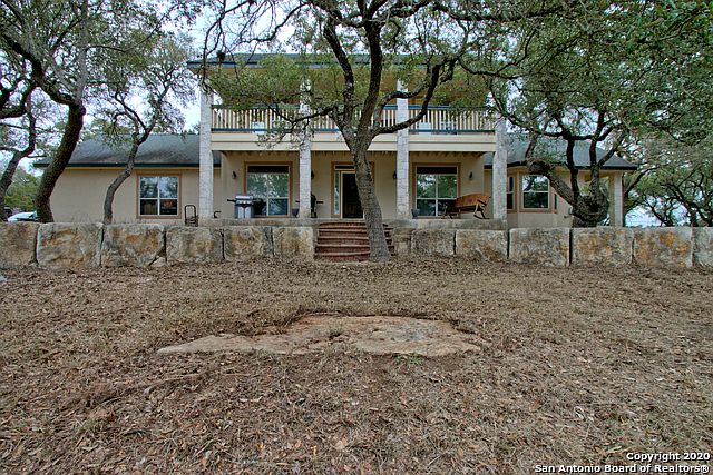 Hill Country living at it's finest! Secluded 7.9 acres provides plenty of room for all your outdoor hobbies. 3/2/2 2-story house that includes an open kitchen & living area, master suite down, 2 guest rooms upstairs, stone fireplace, 2nd level balcony with great views, office and much more. NO HOA, Pioneer metal barn, horses allowed, SV schools