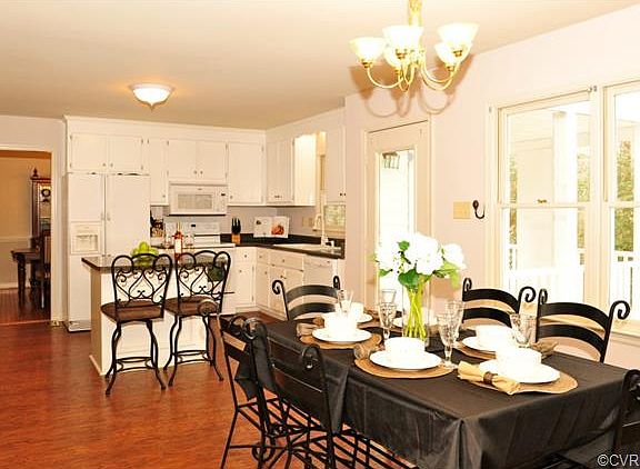 Come see this well maintained two story home that is beautifully and PRIVATELY situated on a 1 acre level lot. This home has so much to offer. It features a formal living room or office, formal dining room, bright white eat-in kitchen that opens nicely to the family room. There is a fabulous covered rear porch, expansive patio, two car side entry garage and walk up attic. Other features include a gas fireplace/gas connection for grilling, jetted tub in the master, walk-in closet and a detached shed and dollhouse/playhouse for the kids that perfectly matches the home. The expansive front porch, rear screened in porch and gigantic patio are ready for a little peaceful R&R and/or entertaining large crowds. Both of the HVAC units have been replaced in the last 2 years. The Dishwasher, Stove and Microwave were all replaced in 2011. There is a 2-car double width driveway. These sellers have loved their home, raised their family there and are now retiring! The new owner of this home will enjoy this close in "country oasis" with Chesterfield schools and close enough to great restaurants and Route 288. You will not be disappointed when you come to see this fabulous property.