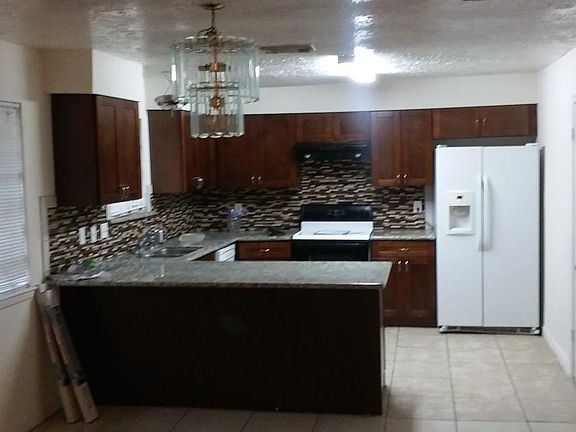 Fresh paintTile floorsGranite countertopsRemodeled kitchen