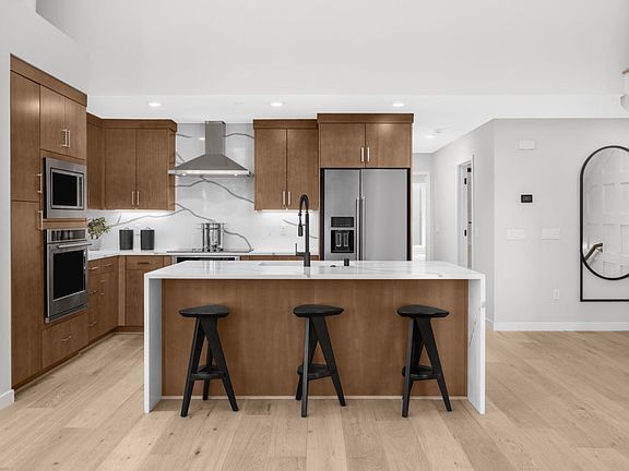 Gourmet kitchenChef kitchen packageTop-level mezzanineHigh ceilingsQuartz countertopsStainless-steel appliancesUpgraded cabinets