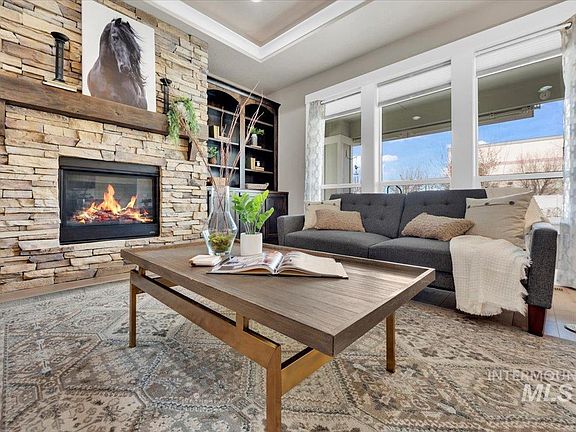 This stunning custom-built home sits on a spacious .30-acre lot, offering luxury, comfort, and convenience. Boasting 4 bed, 3 1/2 bath with bonus. The main level showcases a well-appointed kitchen, perfect for culinary enthusiasts, flowing seamlessly into the dining and living areas, ideal for entertaining guests or enjoying evenings by the fireplace. Upstairs, a versatile bonus room awaits, complete with a full bathroom, providing endless possibilities for a game room, home theater, or guest suite. The oversized garage features epoxy floors, a large work area, and a workbench for all your DIY projects. Nestled in Pinewood Lakes community, residents enjoy amenities including gated RV parking, a community pool, scenic walking paths, and play area. Plus, with close proximity to shopping, dining, and the tranquil Boise River, every convenience is within reach. Out back discover your own private oasis in the expansive North facing backyard complete with covered patio, beautiful landscaping& relaxing hot tub.