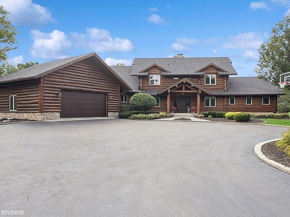 You may have just found the house of your dreams in this custom designed and built Alpine Log Cabin. Cabin is actually an understatement for this masterpiece of a home! It is privately tucked away on 3.8 acres with its own 1 acre stocked pond for fishing. From the moment you come down the private drive you will be amazed by at each and every inch of the home. Each room you enter the "wows" will continue. This 5,643 s/f was so well envisioned and designed for entertaining and living everyone that sees it will be in awe! The first floor has two bedrooms including a primary suite with gorgeous views out the back to the pond, a beautiful walk in closet/dressing room, a gorgeous bathroom with walk in shower and soaking tub. The living room with soaring ceiling and full windows (with remote window treatments) and floor to ceiling stone fireplace. Imagine your holidays here! Kitchen has 2 story volume ceilings w/Subzero refrigerator, Viking appliances, extra sub zero fridge in massive kitchen island, filtered hot and cold water, walk in pantry. Off the kitchen is the sunny Breakfast Room, which leads into the 3 season Sun Room with fireplace! The second floor has 2 bedrooms and a full bath. The walk out basement has the last 2 bedrooms, (6 in total) in-law suite with full kitchen, and full bath. Radiant heat flooring throughout, central air conditioning zoned, heated garage floor, 2.5 car garage, custom logs from Montana, new roof 2024, The home was filmed for an upcoming Netflix Movie, 6 beds 3.1 baths, the features go on and on, schedule your private showing today!
