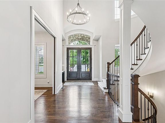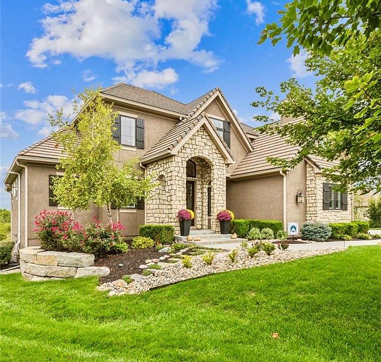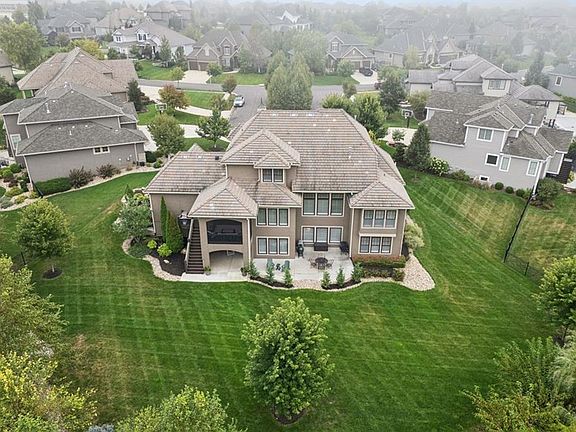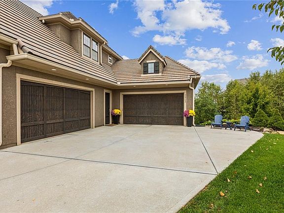 Your chance to own a true masterpiece in Overland Park’s premier luxury community—Mills Farm! This one-of-a-kind custom Todd Hill home combines timeless elegance with modern comfort on a rare, private cul-de-sac lot backing to greenspace. Featuring 5 bedrooms, 6.1 baths, and a rare 4-car epoxy-finished garage, every detail has been thoughtfully designed and meticulously maintained. Step inside through brand-new double doors into an impressive foyer with a sweeping curved staircase, newly replaced high traffic stair carpet, and updated chandelier. A dedicated office with hidden glass pocket doors overlooks the landscaped front yard, while the chef’s kitchen boasts a massive island, walk-in pantry with grocery door, and seamless flow into the great room with stone fireplace and stained beams. Walk out to the low-maintenance covered deck with inviting fireplace and separate grilling space, perfect for entertaining. The main-floor primary suite offers a private retreat with spa-like bath, dual vanities, and euro shower. Upstairs, three large bedrooms each feature hardwoods, private en-suites, and massive walk-in closets. Don’t forget to see the hidden room behind the custom built book shelfs. The finished walkout lower level is designed for entertaining, with a stunning wet bar, rec room, billiards area, 5th bedroom, full bath, and access to a stamped concrete patio perfect for outdoor entertaining. Enjoy serene views from your expansive, treed backyard—the perfect pool lot. Additional high end features include: stone columns, wood beams, plantation shutters, custom ceiling treatments, intricate millwork, upgraded lighting, and a durable tile roof. All just a short walk to the community pool, clubhouse, and award-winning elementary school. Don’t miss your chance to view this incredible home!