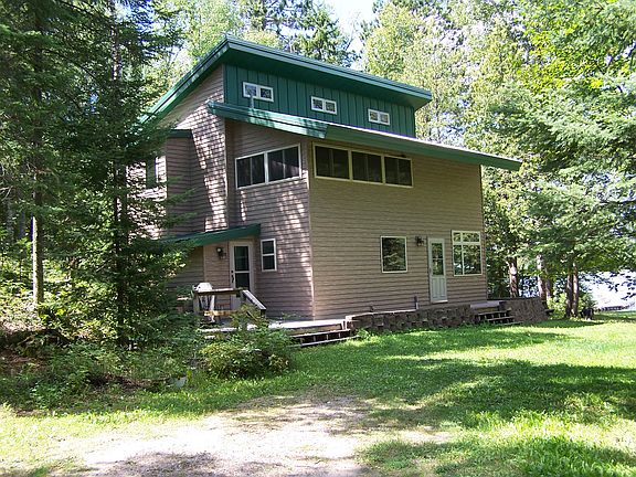 Lakehome. cabin or recreational get away, 2 bedroom, 2 story on a quiet lake. Gentle slope to sauna that is only feet from the sandy beach. Super-insulated, with off-peak in-floor heat under the ceramic tiles. Enjoy the flames from the propane parlor stove in the living room. End-matched pine feature wall in upstairs bedrooms, tongue and groove poplar ceilings, Douglas fir paneling in living room, hand plastered walls in bedrooms and 3 season porch. Knotty pine tongue & groove wood in the utility room. Maintenance free steel siding and roof, composite decking, vinyl clad windows. Comfortable, quiet and easy to heat and yet only 10 miles to town!!!