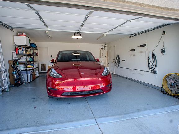 Insulated garage doorLow-maintenance backyardPrivate primary suiteSplit-wing homeElectric car chargersModern kitchen