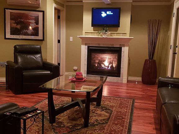 An incredible upstairs master suite with king size bed, gas fireplace and lots of closet space. Master bath has claw-foot soaking tub, double shower and double vanities with a balcony overlooking the lower level sun room. Downstairs features a large living room with gas fireplace, a large dining area, and additional dining booth. A half bath on the main floor. The kitchen has large curved breakfast bar and a walk in pantry. The living room opens up to a very large sun-room with second kitchen, large dining area with gas fireplace, and daybed overlooking the river. The second sleeping area is a full size bed in the sunroom that lifts to reveal a double Jaccuzzi jetted tub. A huge automatic glass door opens off the sun-room to an outside floating deck, perfect for fishing or watching sunsets. The house has an efficient mini-split A/C and heating and a tank-less gas water heater. Beautiful Brazilian Koa wooden floors throughout except the upstairs bedroom which is carpeted. Rent does not include electricity and gas. Secured Gated off-street parking lot. Easy freeway access. Walk-able to shops and restaurants.