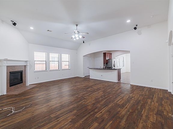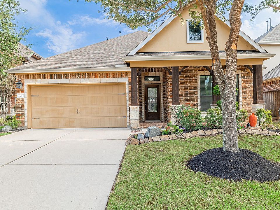 Gorgeous 1-story home nestled in the sought-after master-planned community of Lakes of Bella Terra. A charming covered front porch welcomes you inside, where a tiled entry leads to the spacious family room with a corner gaslog fireplace and luxury vinyl flooring. The open-concept kitchen boasts granite counters, stainless steel appliances, a breakfast bar, and an adjoining dining area—perfect for everyday living and entertaining. A versatile flex room off the family room offers endless possibilities as a study, game room, or playroom. The serene primary suite features a generous walk-in closet, dual sinks, and a large walk-in shower. Two secondary bedrooms and a full bath provide comfort for family or guests. Recent paint and carpet done in October 2025. Step outside to enjoy a covered patio and beautifully landscaped backyard. Conveniently located near the Westpark Tollway, shopping, dining, and more.