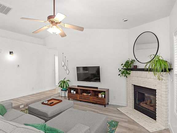 Check out this renovated single-level home in west Boise—only minutes from The Village! A desirable split bedroom floor plan with large windows, natural light and vaulted ceilings is a bright, inviting place to call your own. The home has been recently updated with: new laminate flooring in the entry, living, kitchen and dining; new carpet in bedrooms; PEX plumbing and shower fixtures; modern lighting inside and out; a new roof and LeafGuard gutters; exterior and interior paint; new window coverings and completely renovated landscaping. In the winter, cozy up by the fireplace and in the summer, relax on the expansive backyard patio—or retreat to the massive primary suite with a large walk-in closet and dual vanity. Find space for everything with ample closet and cabinet storage. This location cannot be beat—quietly tucked away from Fairview and Cloverdale, yet close to nearby restaurants, shopping, and recreation (Top Golf anyone?)