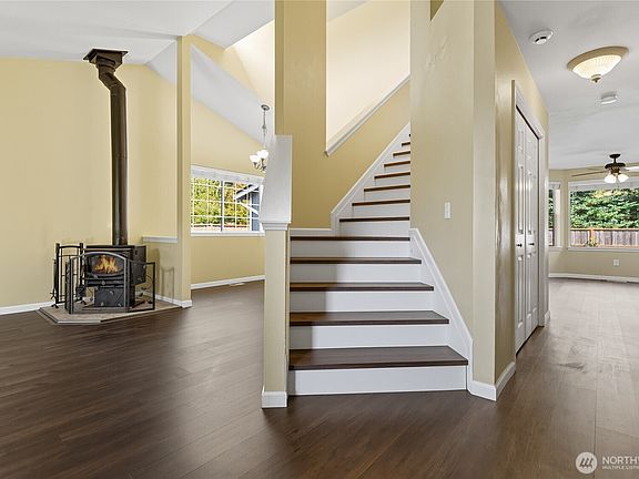 Set on a spacious corner lot, this move-in ready home offers a versatile floor plan with both open living spaces and formal dining/living areas. A vaulted entry and cozy wood burning fireplace create a welcoming great room, complemented by updated Luxury Vinyl Planked floors throughout the home. The primary suite includes a walk-in closet and private bathroom that creates a private space to get away. Enjoy a fully fenced backyard—perfect for your furry friends, an ideal canvas for creating your dream garden, hosting PNW summer gatherings and evening BBQs. Ready and waiting for you in an ideal location, just minutes from Gig Harbor North shopping, amenities, and a short drive to charming Downtown and the Waterfront.