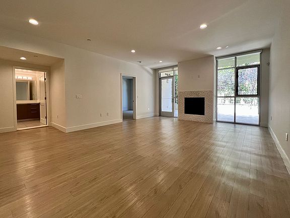 With eastern exposures and hillside views this spacious 1 bedroom 1 bath unit has 950 SF of living space with a large 470 SF private patio just off the open concept living/dining area. The unit has all the thoughtful touches you'd expect, including 10 FT ceilings with floor to ceiling windows, a gas fireplace in the living room, stainless steel appliances, contemporary-designed kitchen and bathrooms with quartz counter-tops, spacious closets, and in-unit washer/dryer.