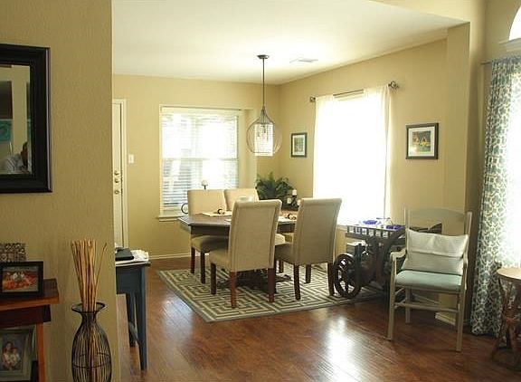 Beautifully maintained and updated home, with hardwood flooring and new light fixtures, extended patio area, SS appliances. Large, upst. flex room, used now as a 2nd living area, but could be enclosed to make a 4th bedroom. Quiet, family oriented neighborhood, with highly rated elementary and middle schools. Wonderful community with pool, walking trails, parks for kids and parks for dogs.