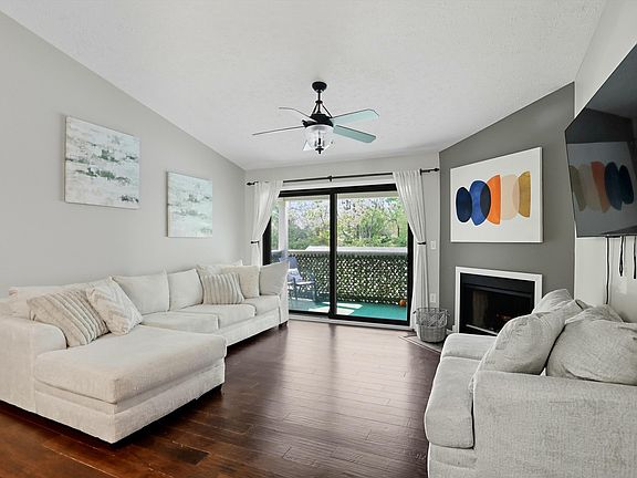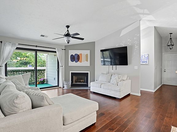 Charming and spacious 2BR/2BA upper-level condo in sought-after Lenox Trace, featuring vaulted ceilings, gas fireplace, and a bright 15x12 den - ideal as a 3rd bedroom, home office, or flex space. Enjoy morning coffee or evening sunsets on your own private covered patio. Kitchen offers granite countertops, stainless steel appliances, tile backsplash, and generous cabinetry. Primary suite includes dual walk-in closets along with private en-suite bath. Additional features include in-unit washer/dryer, private hallway storage, secure building entry, two private garages (#43 & #50), and reserved parking space (#62) included. Condo is located near the back of the community. Community amenities include a pool, tennis courts, and clubhouse - all just minutes from the Monon Trail and Carmel's Arts & Design District, shopping, and dining.